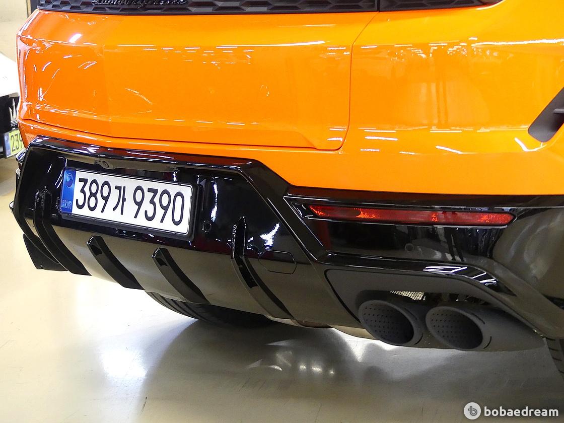 리어 디퓨저와 스포일러는 고속 주행 시 안전성을 높여 우르스 S에 비해 리어 다운 포스를 약 35% 증가시킵니다.