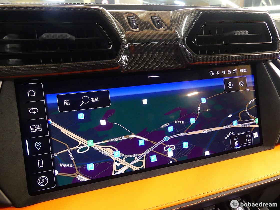 람보르기니의 센트로 스틸레(Centro Stile) 디자인 센터는 송풍구, 뚜렷한 Y자 모양의 아노다이징 알루미늄 트림