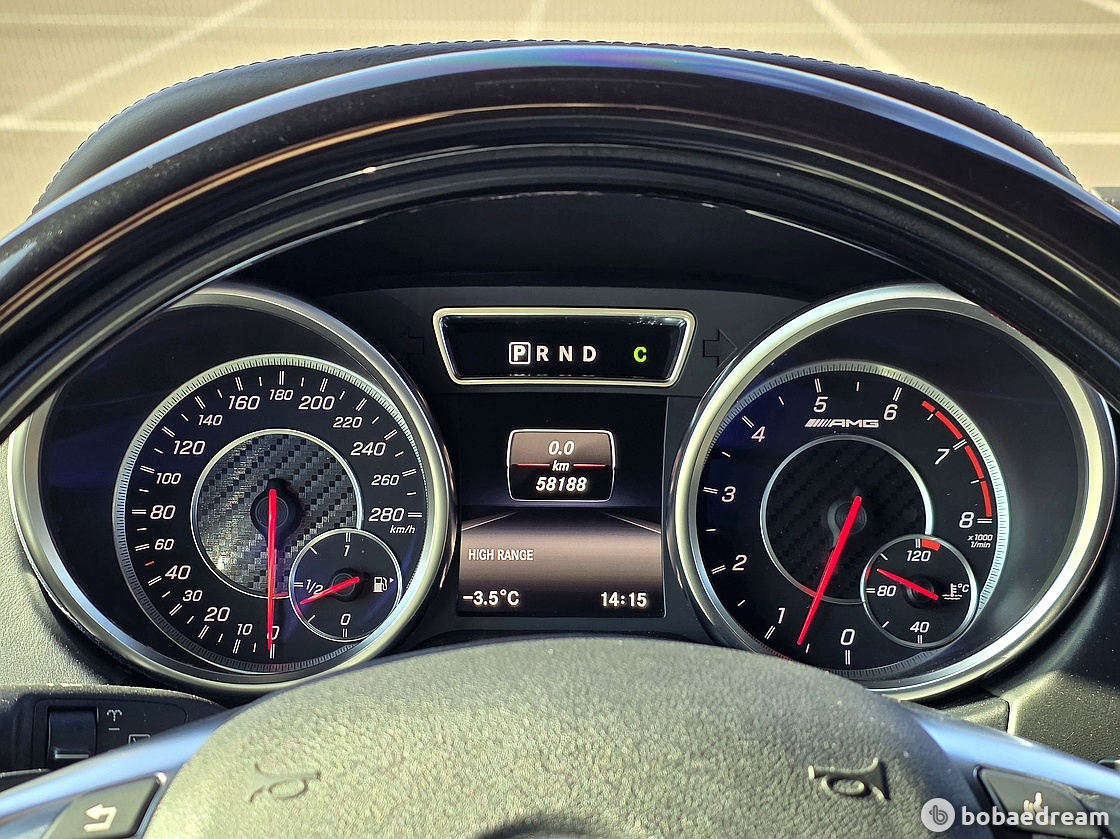 여기에 AMG 전용 변속기와계기반, 버튼들이 눈에 띄고, 벤츠의 최신 인포테인먼트 시스템을 비롯해 뒷좌석
