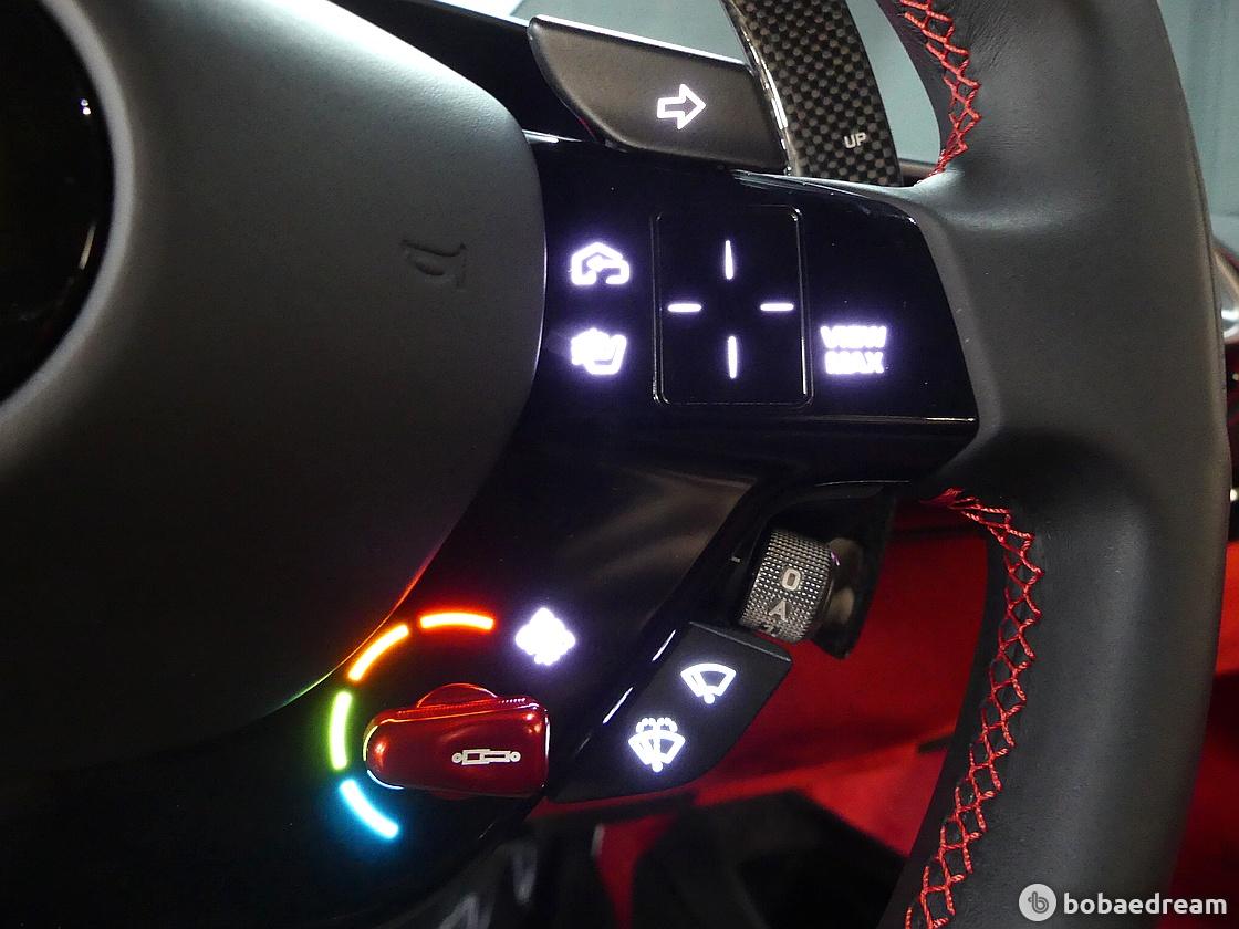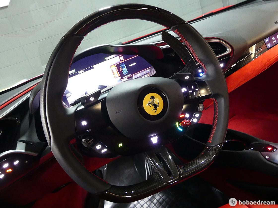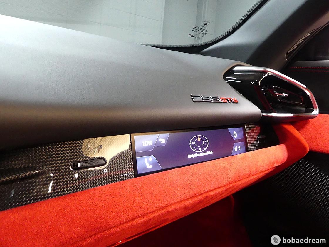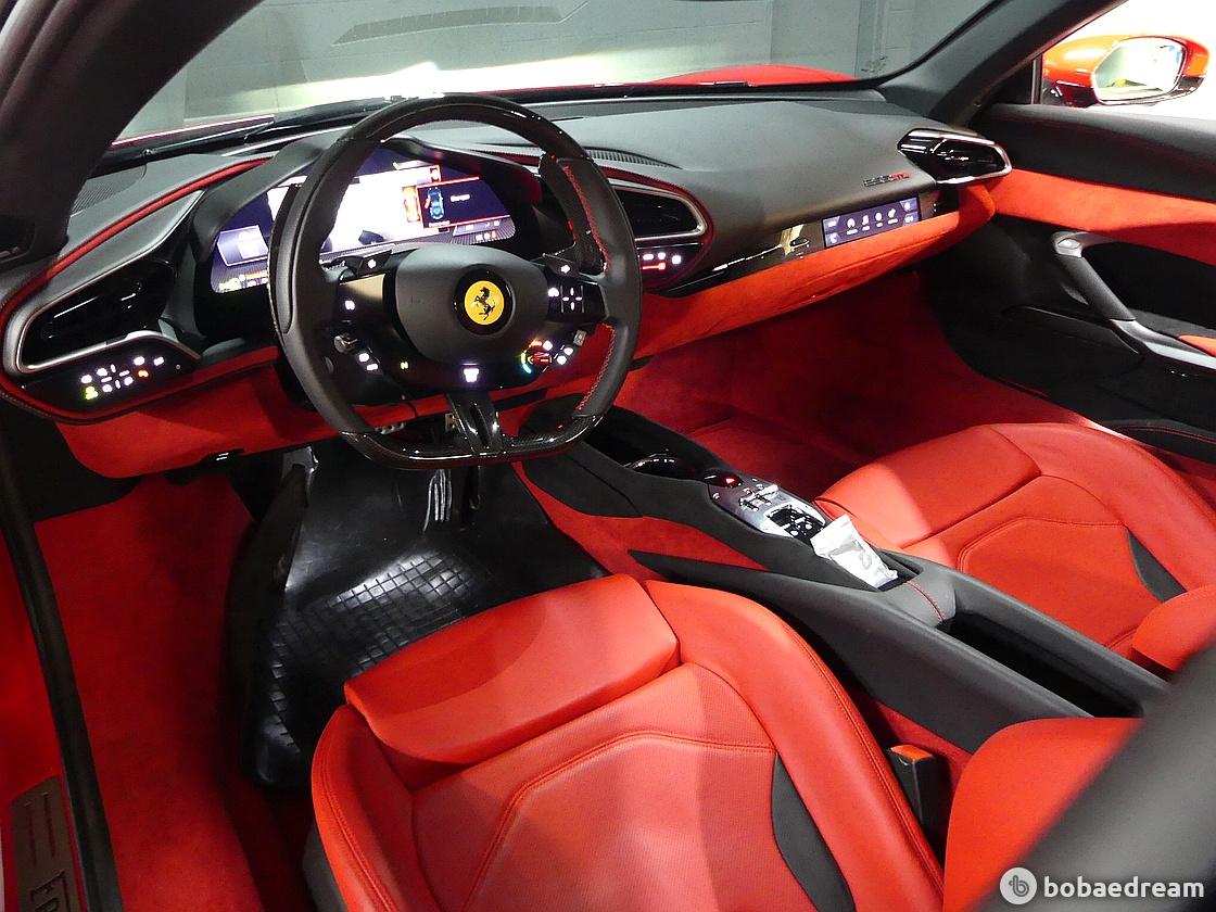 실내 인테리어는 SF90 스트라달레를 통해 선보인 풀 디지털 인터페이스를 토대로 디자인됐다. 인테리어