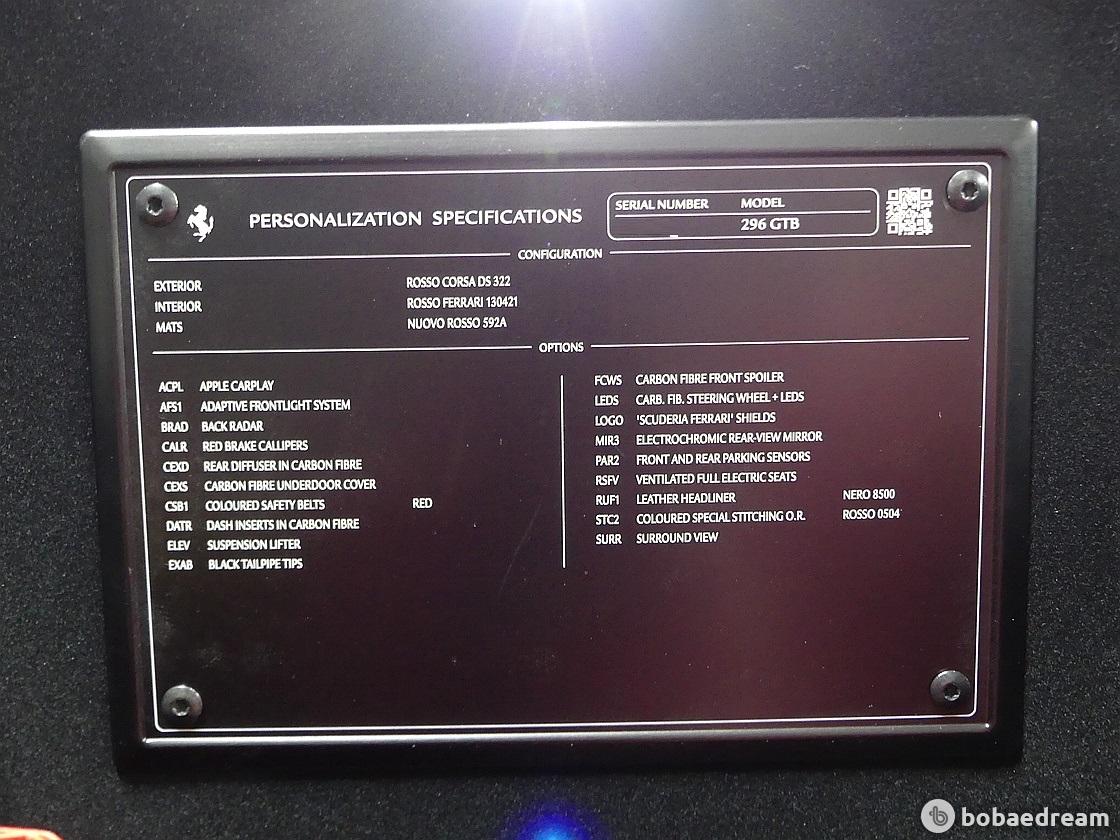 외관에서 특이한 부분은 296 GTB에는 2개의 스포일러가 존재한다는 점이다. 루프 스포일러와 히든 타입의