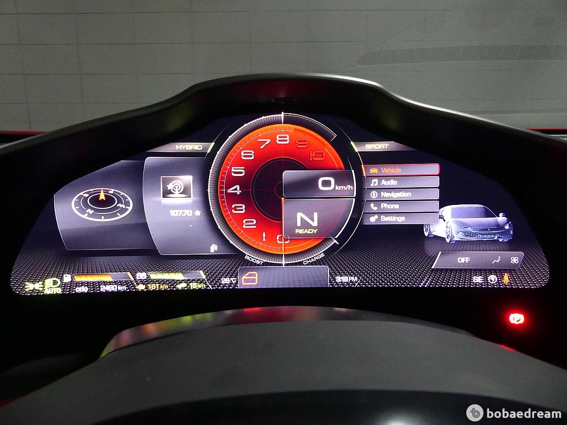 전기모터와 배터리를 더해 167마력(122㎾)의 추가 출력을 내 합산 830마력을 내뿜는다.