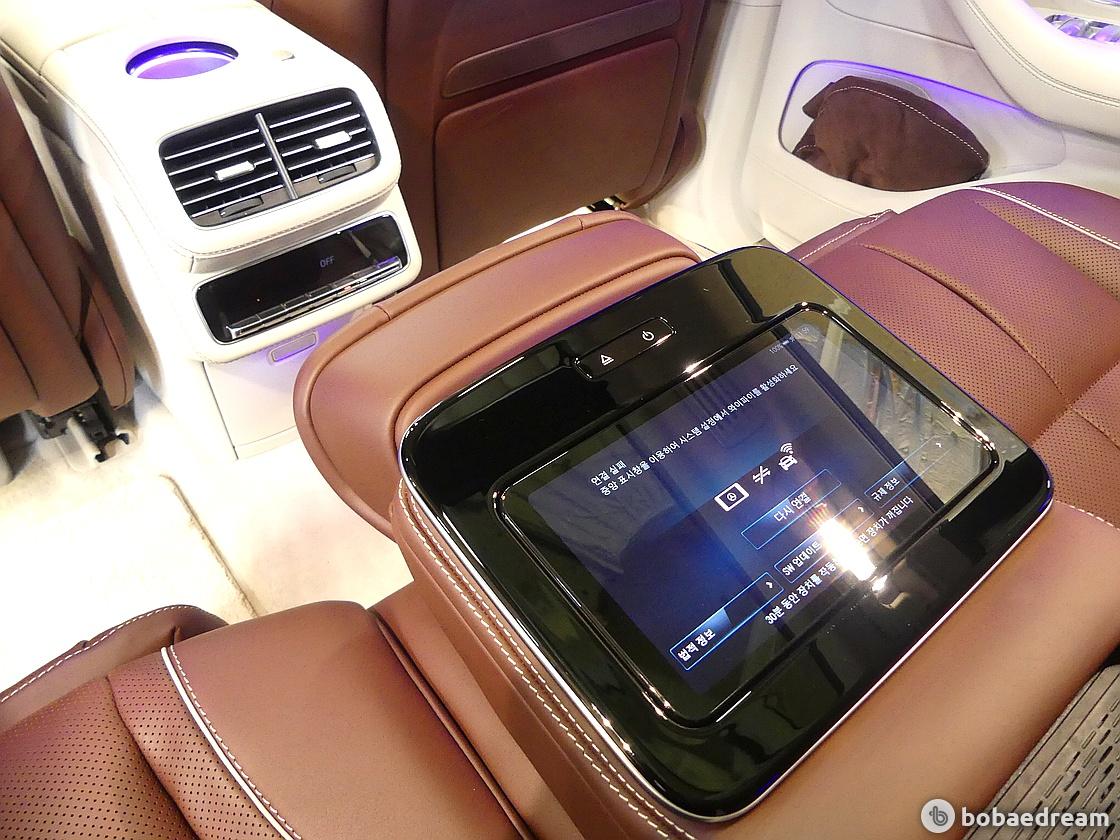 센터 콘솔의 기본 MBUX 후방 태블릿(MBUX Rear Tablet)이나 뒷좌석 사이의 팔걸이를 통해 뒷좌석에서도