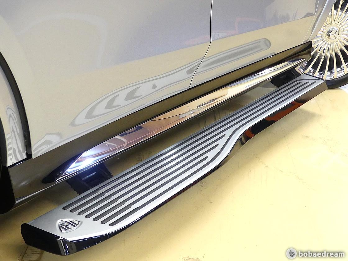 그릴의 촘촘한 세로형 크롬 스트럿(chrome struts), D 필러를 비롯해 차량 외관 곳곳에 위치한 마이바흐 브랜드