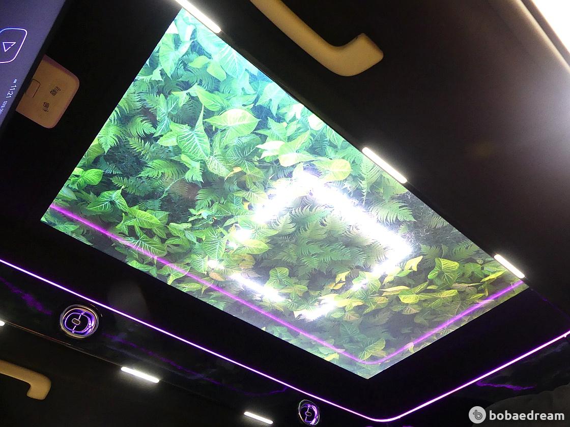 라이팅을 배치해 고급감을 높이고 라운지와 같은 분위기를 나타낸다. 실내 공간은 3열로 이뤄져 광활하다.
