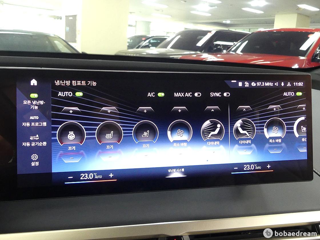 14.9인치 컨트롤 디스플레이를 합친 거대한 곡선형 디스플레이만 눈에 띄는 간결한 실내 디자인을 가지게 됐다.