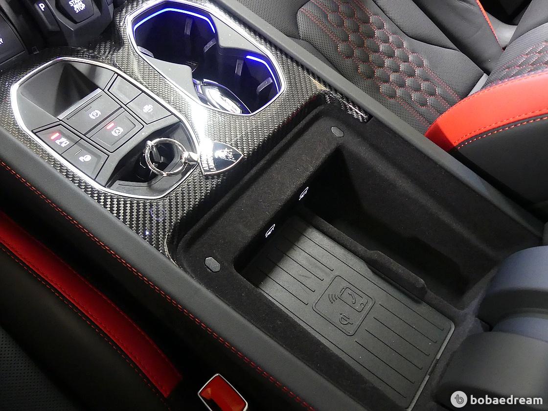 한 디자인이 특징이다. 리어 스포일러에는 아벤타도르 SVJ(Aventador SVJ)에서 영감을 받은 탄소섬유 핀이