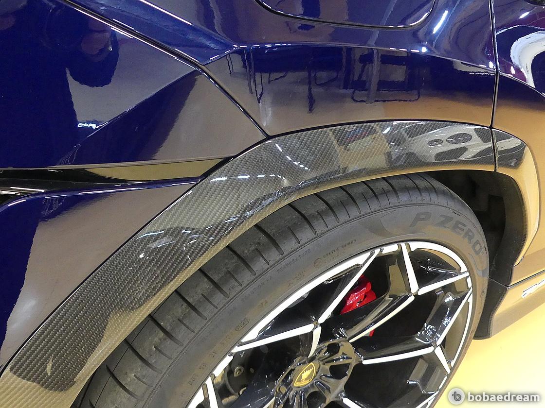 공기 배출구를 포함한 보닛은 경량 탄소 섬유로 제작됐다. 또한 우루스 퍼포만테의 후면은 고성능을 기반으로