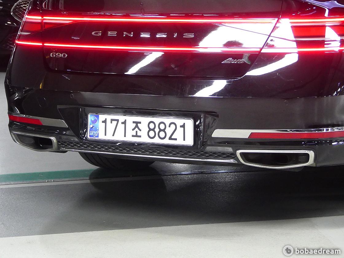 당당하고 안정감 있는 모습의 후면부로 G90의 외장 디자인을 그려냈다.