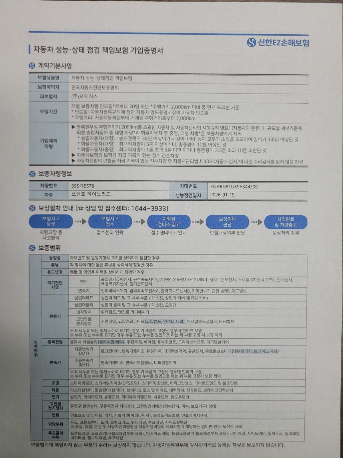 - 신한 EZ 손해보증 보험 가입 차량