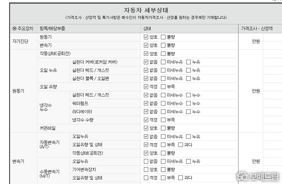 실내·외 상태 양호 / 하부 누유 없음