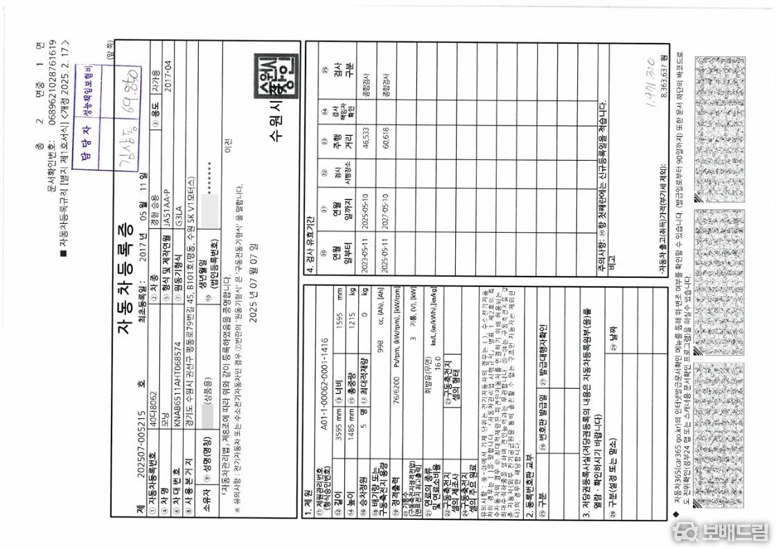 * 개인 1인 신조 차량 입니다.