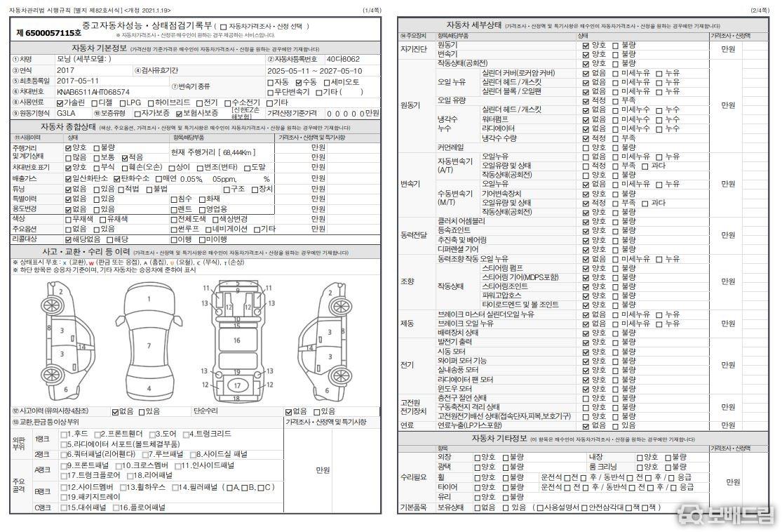 * 성능 점검 기록부 올양호 차량 입니다.