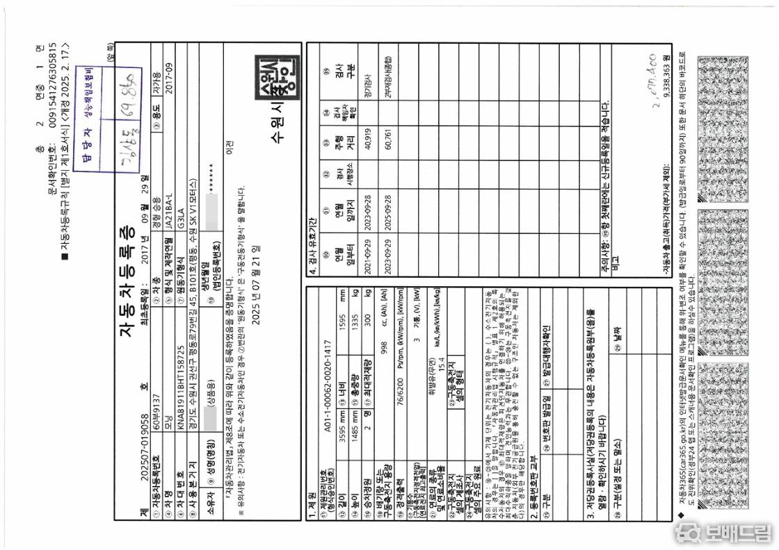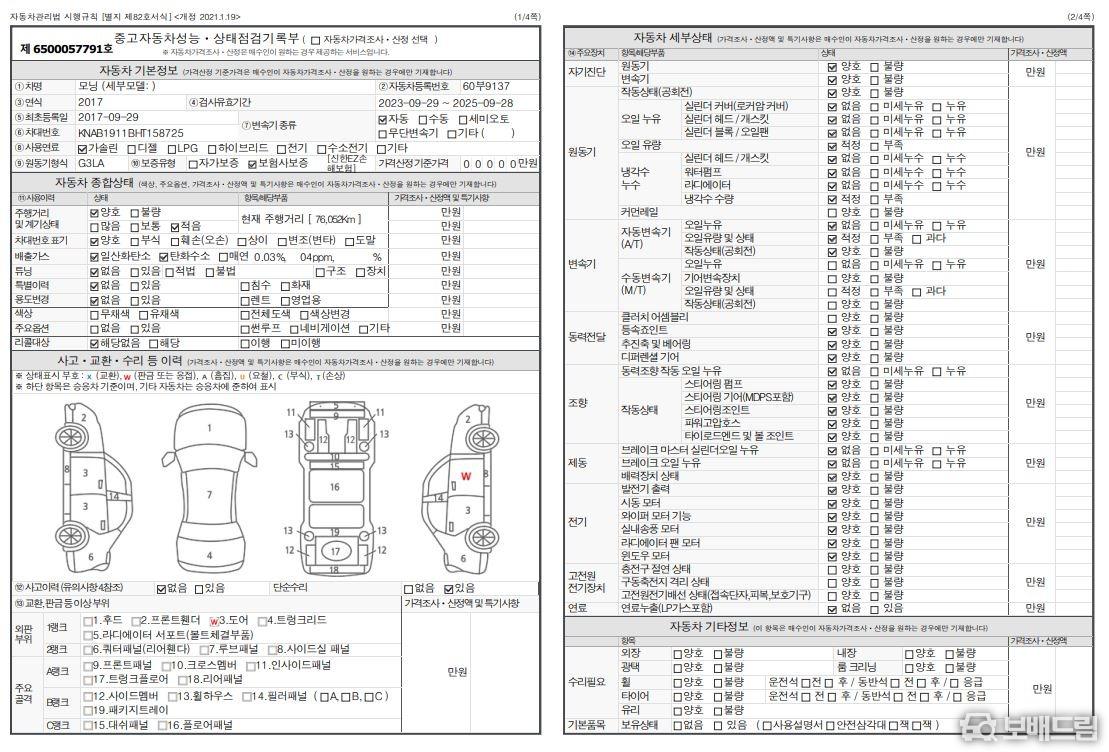 * 성능 점검 기록부 올양호 차량 입니다.