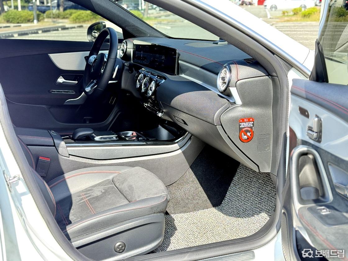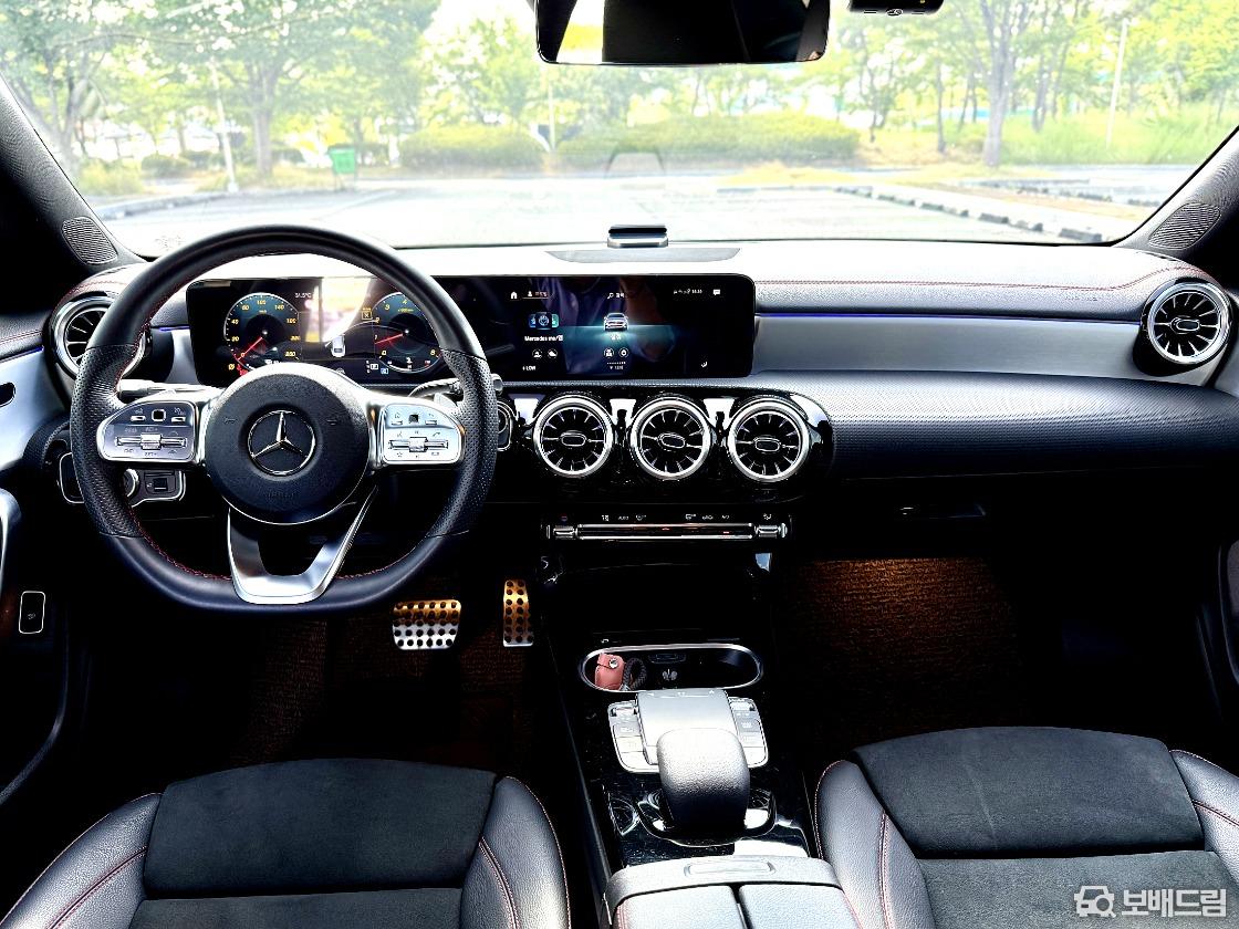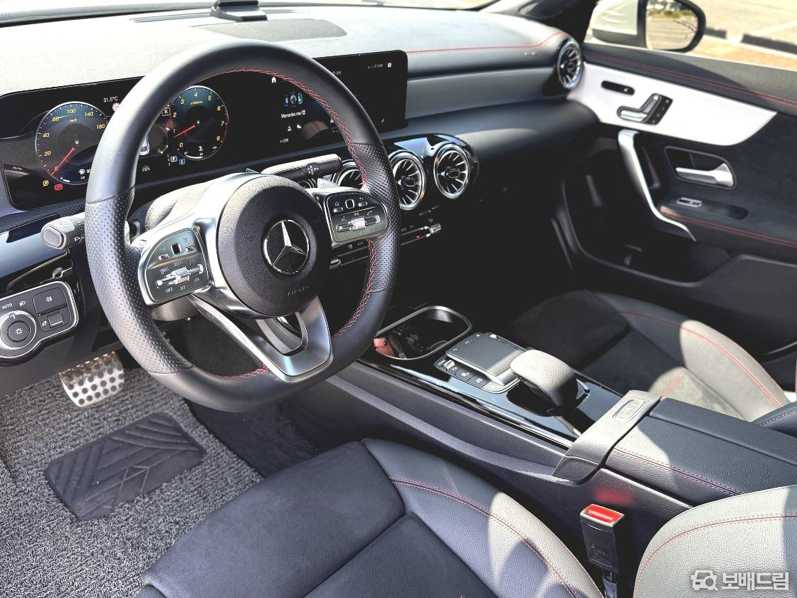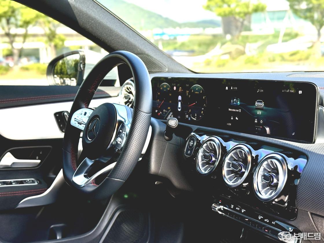인테리어는 같은 플랫폼을 사용하는 A클래스와 기본적으로 동일한 구성이다. 대화면 와이드 스크린 콕핏을