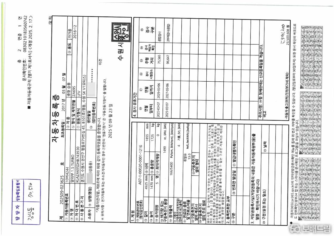 * 개인 1인 신조 차량 입니다.