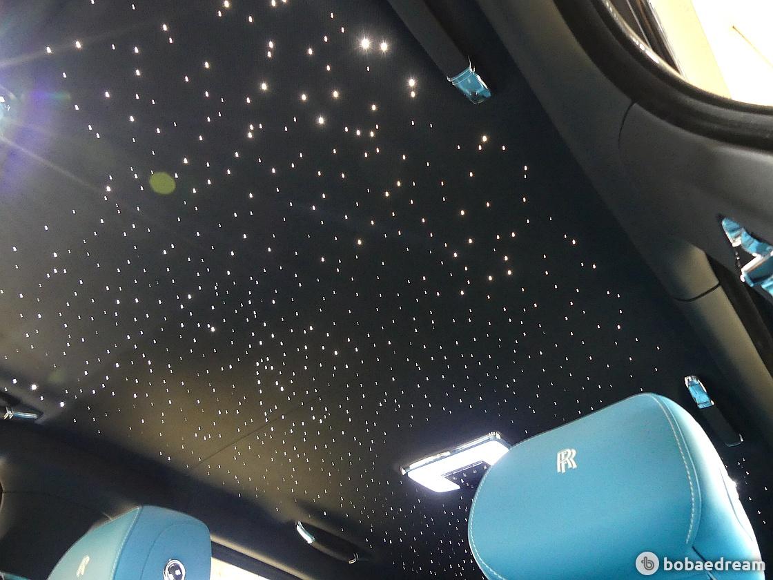 블랙배지 컬리넌에 들어간 ‘스타라이트 헤드라이너’는 고품질 블랙가죽 위에서 은은한 빛을내며 내부 공간