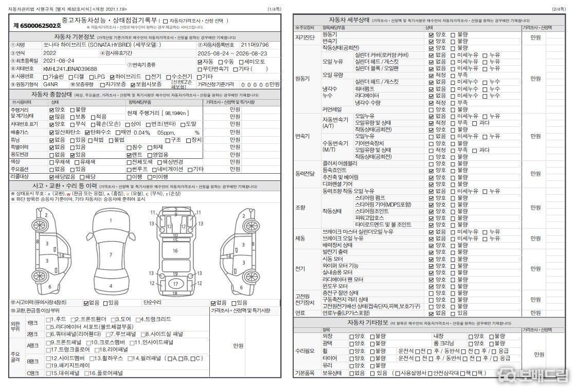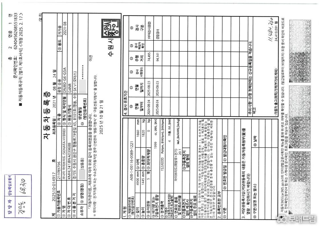 * 개인 1인 신조 차량 입니다.