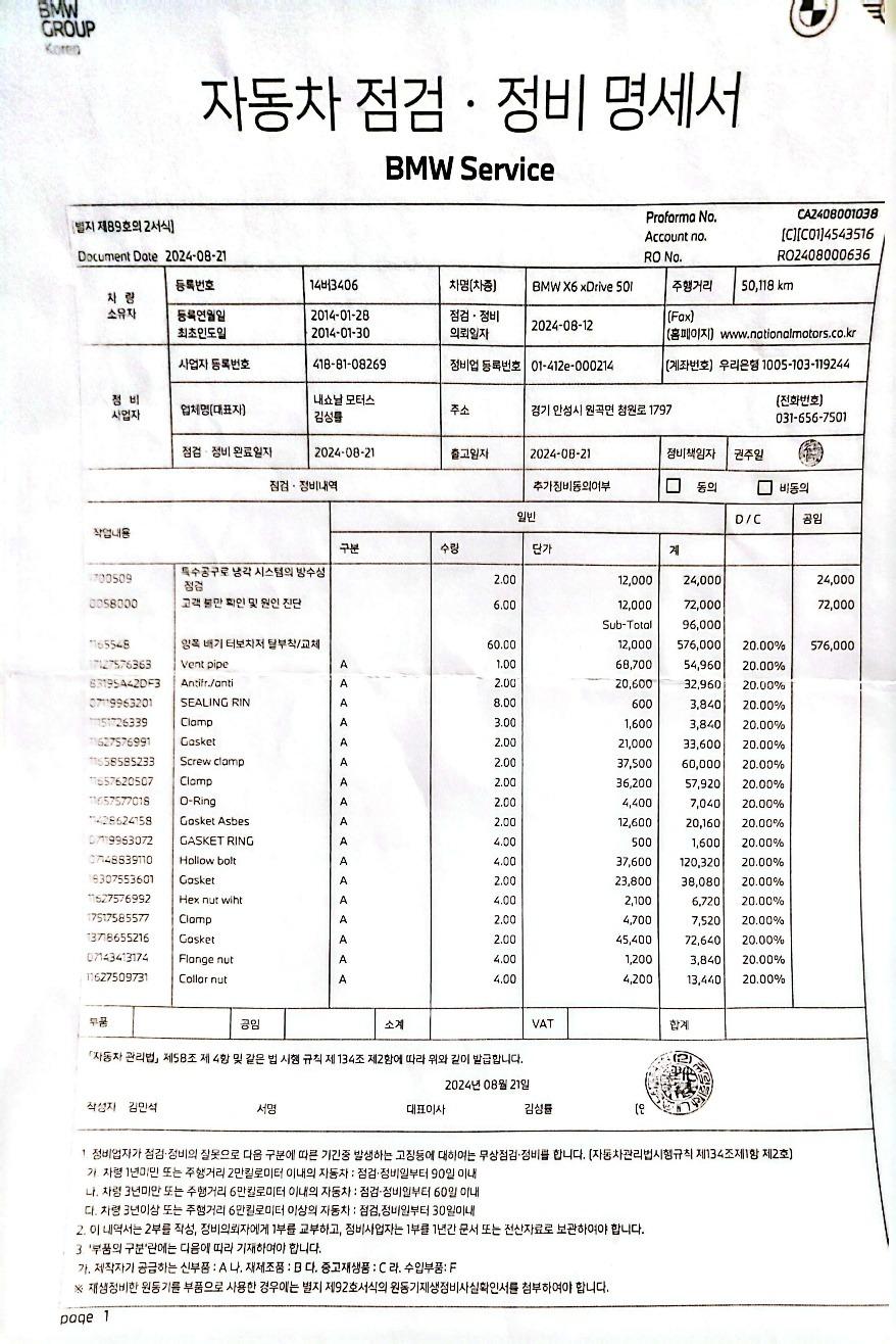 (2024년 8월 - 50,118km) / 냉각시스템 점검 , 양쪽 배기 터보차저 탈부착-교체
