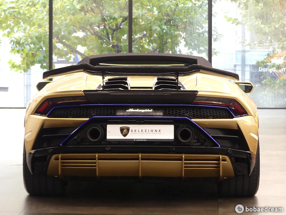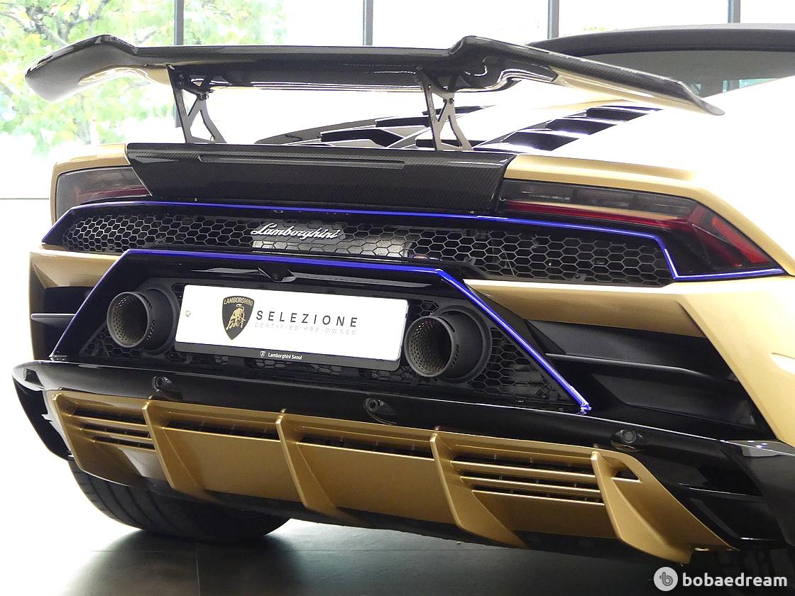 우라칸 LP640-4 에보 후면부는 스포츠 배기 시스템의 트윈 아웃렛을 채택하며 경주용 바이크와 레이스카를