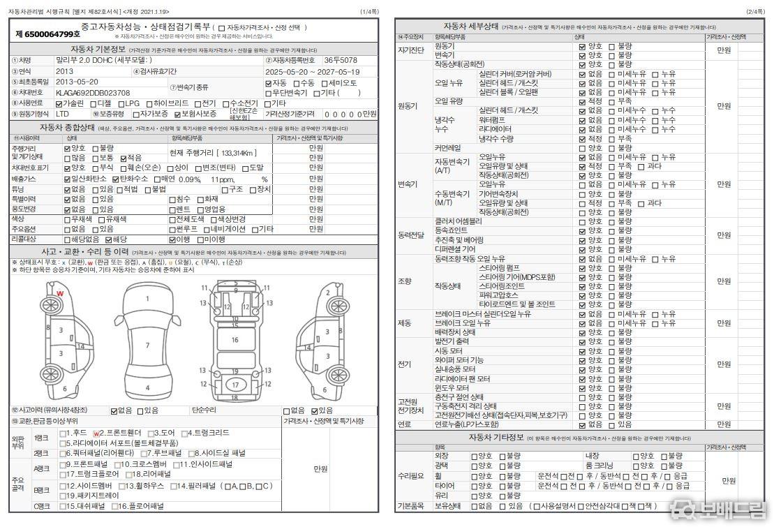 * 블랙박스(2ch) 장착 되어 있습니다.
