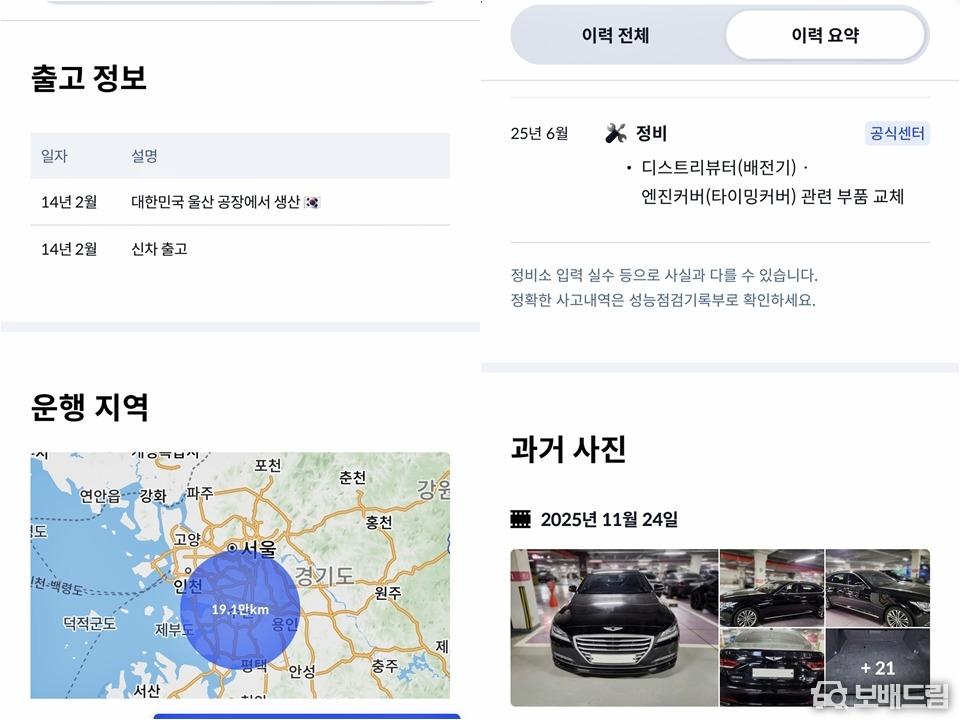 제네시스DH G330 AWD 모던 모델 차량 입니다.