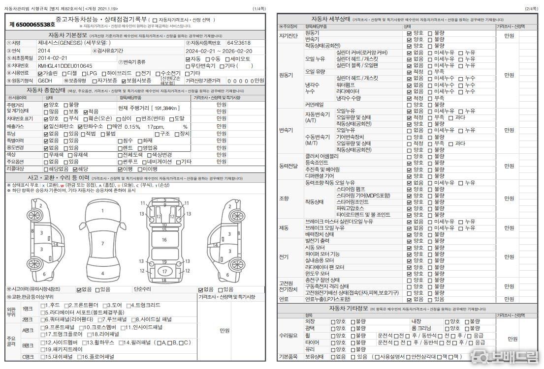 * 성능 점검 기록부 올양호 차량 입니다.