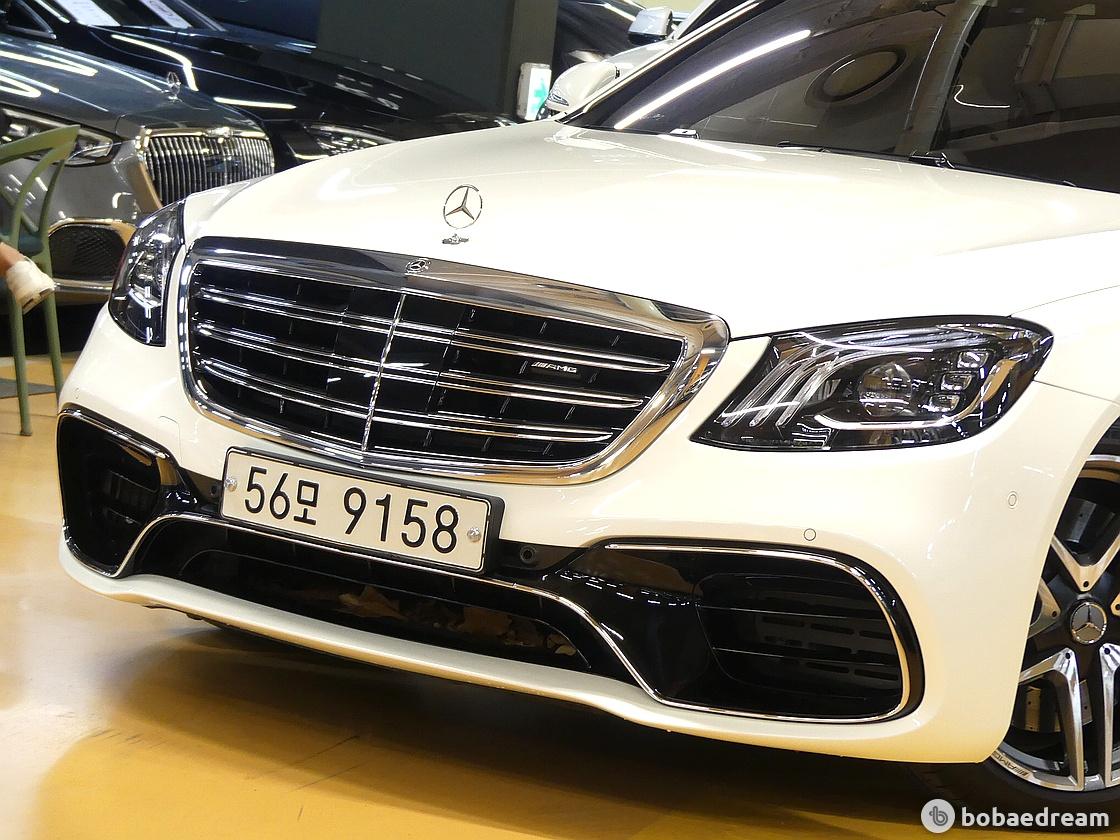 S63 AMG는 디자인에서부터 민첩함과 다이내믹함을 느낄 수 있다. 은색 크롬이 적용된 AMG 전용 앞 뒤