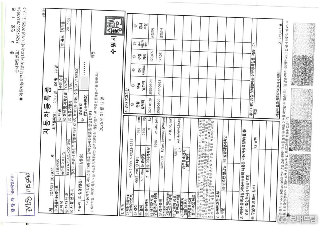 * 개인 1인 신조 차량 입니다.