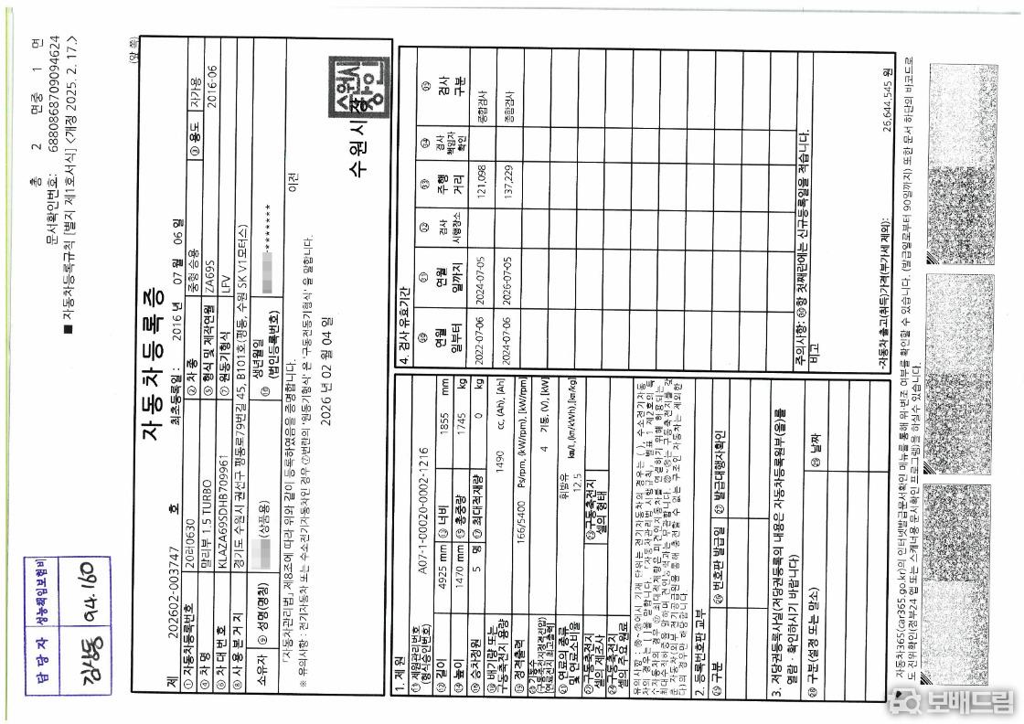 * 개인 1인 신조 차량 입니다.