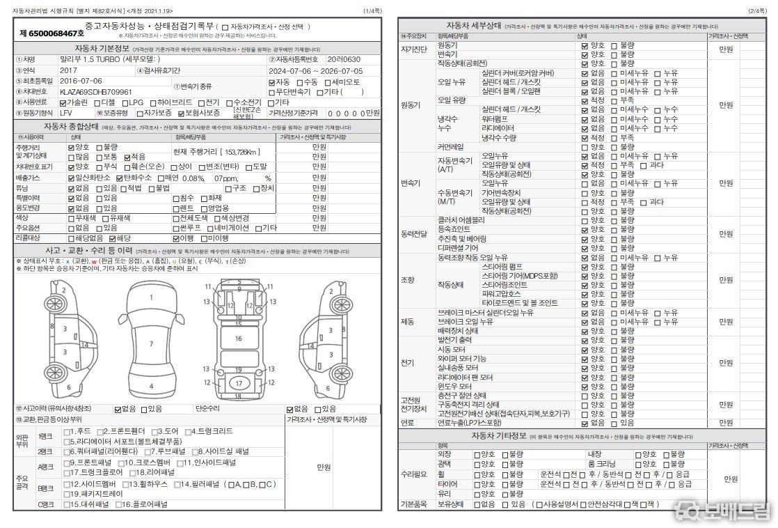 * 성능 점검 기록부 올양호 차량 입니다.