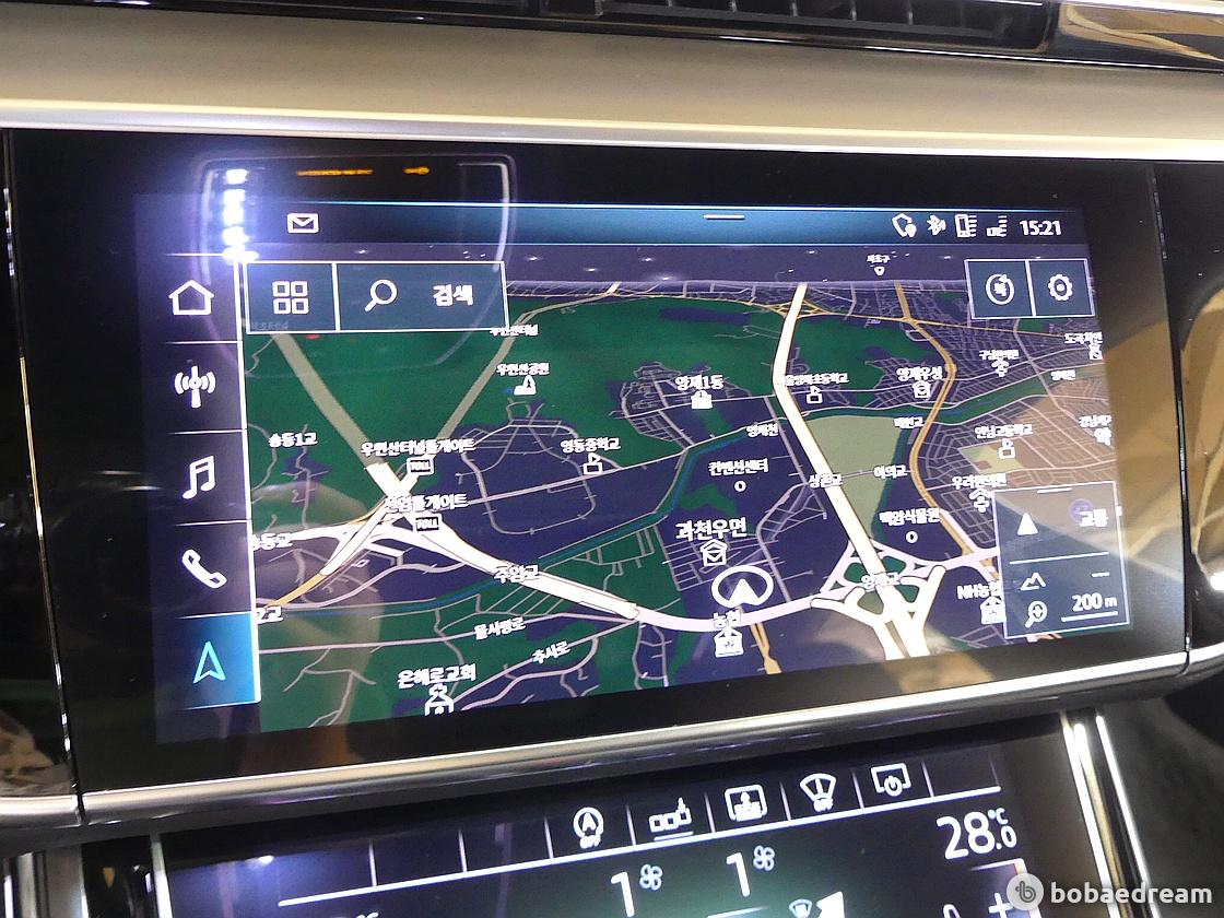 인치 스크린은 MMI 터치로 제어한다. 에어컨 송풍구는 사용 여부에 따라 자동 개폐하며, 안드로이드 스마트