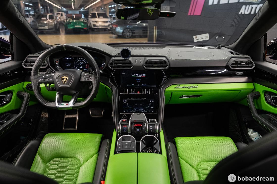 인테리어 트림은 독특한 투톤 컬러 배합을 기본으로, 시트에는 육각형 모양의 우루스 로고가 스티칭되며,