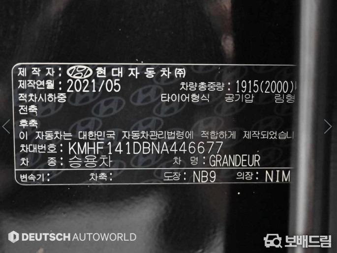 차 량 명 : 현대 더 뉴그랜저IG 가솔린 2.5 르블랑