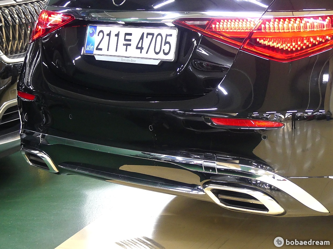 섹션으로 나눠진 진보적인 디자인의 테일 라이트와 마이바흐 전용 리어 범퍼 및 배기 파이프가 장착되어