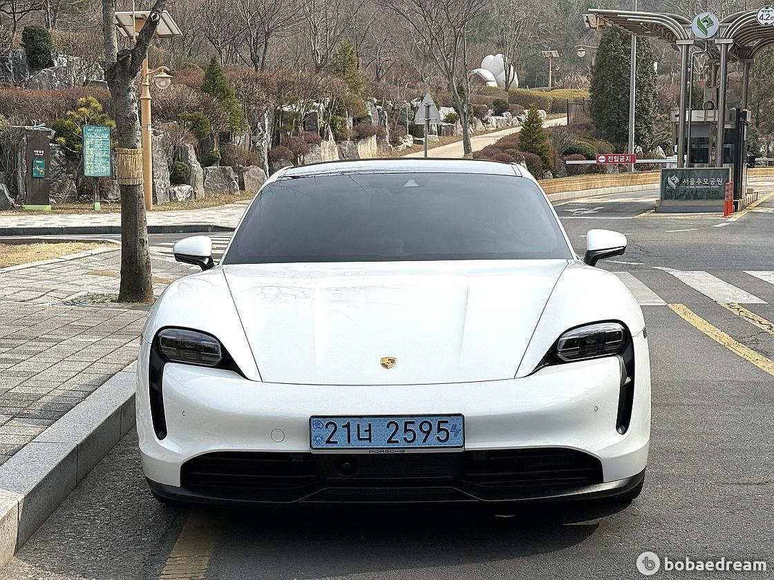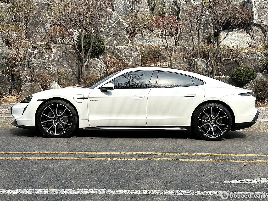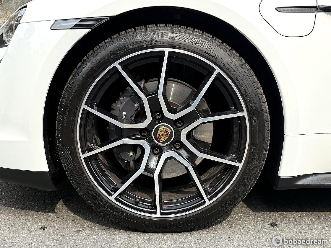 타이칸 베이스의 전면은 윤곽이 뚜렷한 윙과 함께 낮고 넓어 보이고, 실루엣은 후면 방향으로 경사진 스포티한