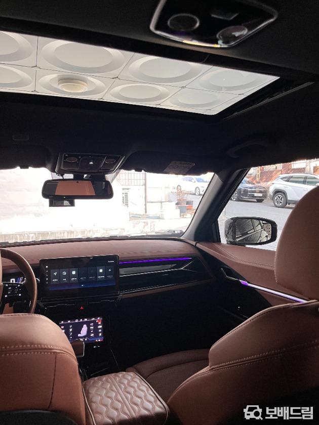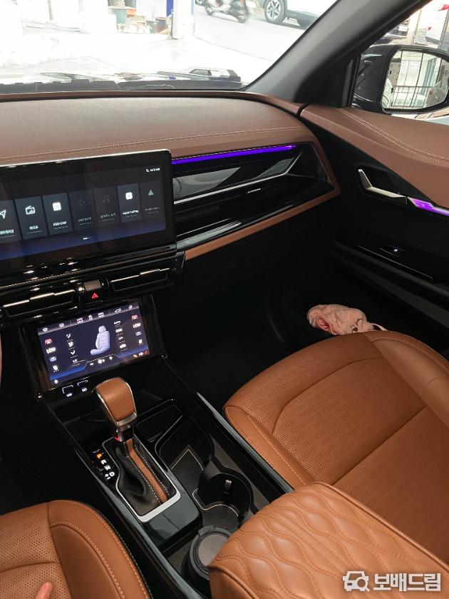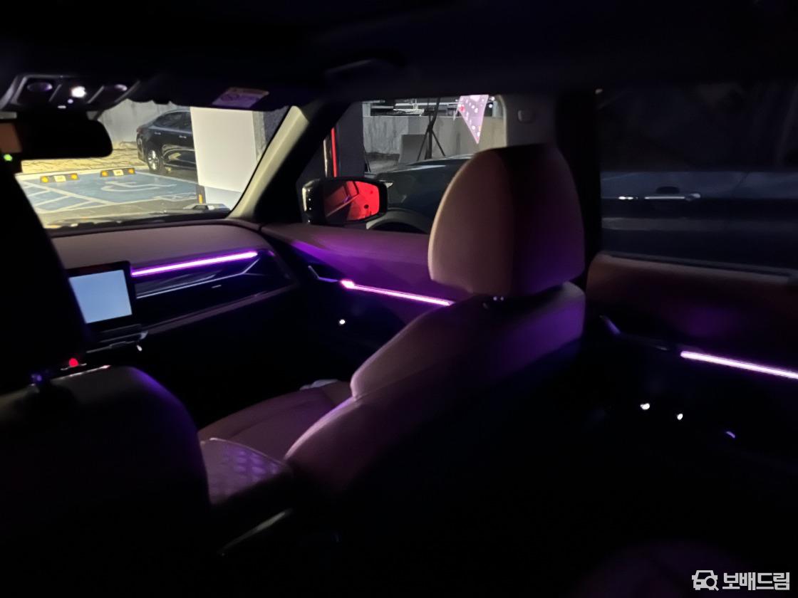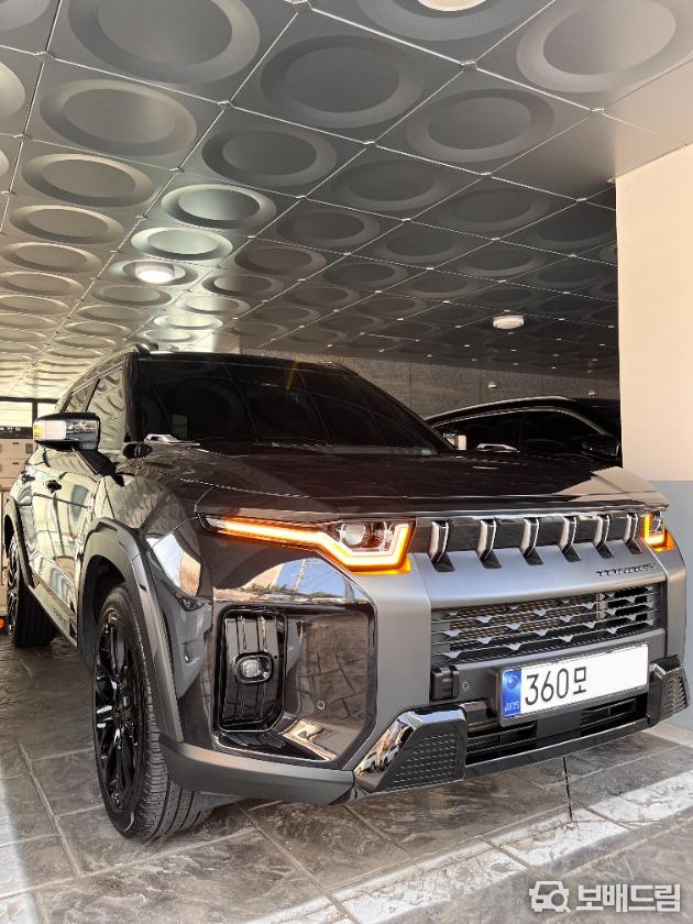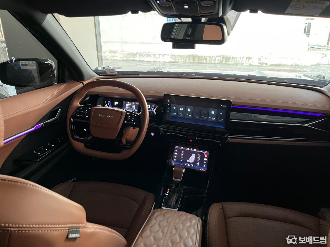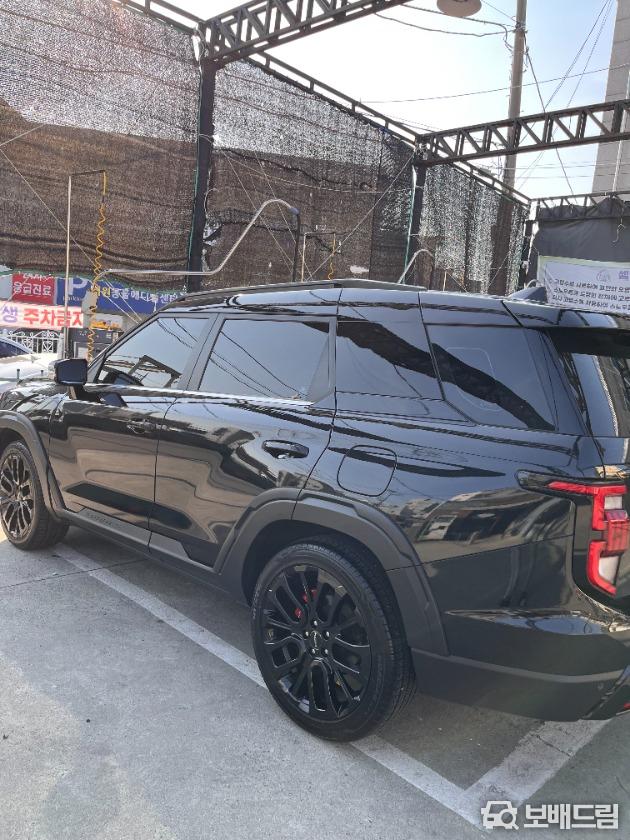 사진보시다싶이 핸들, 휠캡등 kgm신형 로고로 올 교체, 뒷좌석 엠비언트조명 다이해서 넣었고 실내 실버파츠 내장제 대부분 블랙하이그로시로 커버 및 시트지 작업 해서 고급스럽습니다.